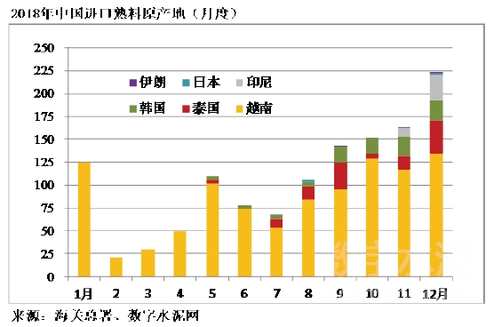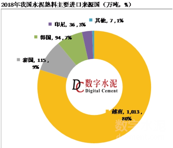 3、熟料進(jìn)口量來(lái)源國(guó)主要來(lái)自越南、泰國(guó)和韓國(guó)