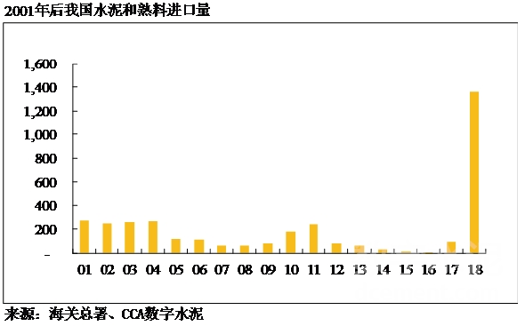 2017年以前,中國(guó)水泥年進(jìn)口量最多不到300萬(wàn)噸,2016年更是達(dá)到了歷史低谷的6.5萬(wàn)噸。但隨著我國(guó)沿海地區(qū)熟料價(jià)格高企,2018年以水泥熟料為主要產(chǎn)品的進(jìn)口量爆發(fā)性增長(zhǎng),僅當(dāng)年的進(jìn)口量就達(dá)到1363萬(wàn)噸,比2005-2017年13年進(jìn)口量的總和還多。