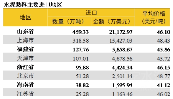 從進(jìn)口熟料的區(qū)域來(lái)看,山東占總進(jìn)口量的36%,位于長(zhǎng)三角區(qū)域的上海、浙江、江蘇合計(jì)占35%,華南福建、海南兩省合計(jì)占13%。
